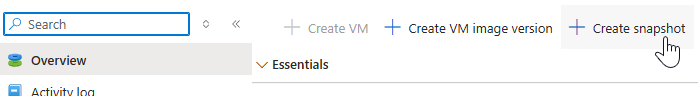 4. On the disk overview page, click Create snapshot at the top.